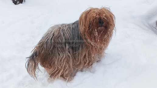 Лохматая собачка растерянно бродила по заснеженной улице, шерсть ее слиплась в сосульки, а глаза ничего не видели .