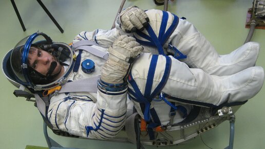 Тренировка перед спуском на Землю. Надеваем скафандр «Сокол».