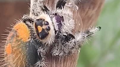 Красивая пара королевских пауков-скакунчиков на наших экранах! У меня есть самец данного вида, очень интересно наблюдать за его активной охотой и суетным поведением!