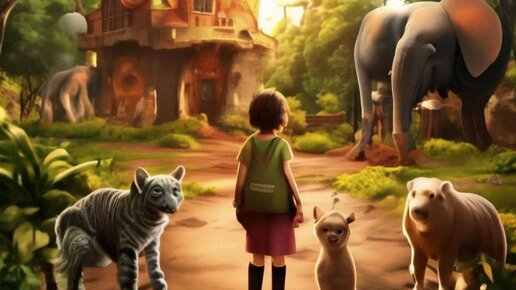 Наконец, они добрались до зоопарка, где их ждали удивительные существа - львы, слоны, жирафы, обезьяны и многие другие животные...