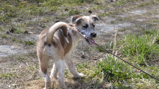 Молодой мальчик хаски тоже вчера приехал из отлова с другими собачками. Все собаки из отлова очень худые и могут быть переносчиками чумки, поэтому в приюте им предстоит сначала жить на карантине.