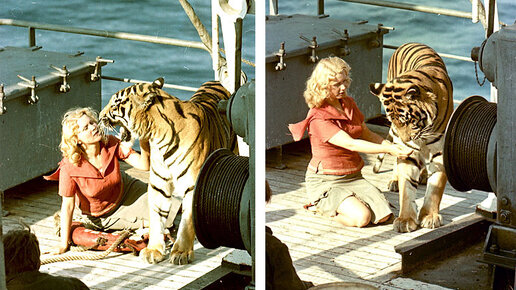 Кадр со съёмок фильма «Полосатый рейс» В фильме были задействованы дрессированные тигры, у которых уже был опыт работы на съёмочной площадке, но даже с этими условиями киношникам пришлось не сладко. Роль главной героини буфетчицы Марианны досталась известной цирковой дрессировщице Маргарите Назаровой. Это была её первая и единственная актёрская работа, хотя до этого она уже выступала дублёршей профессиональных актрис. Существует даже легенда, что сама идея фильма началась именно с этой девушки,...