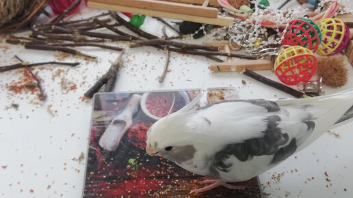 Сколько ест корелла. Сеня почти час копошится! 🦜👍
