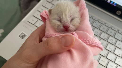 Кормление новорожденного котенка детской молочной смесью из шприца