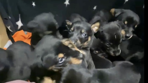 А может и тот и другой, смесь добермана с ротвейлером... Голые , короткошёрстные. и характерный окрас. В любом случае малыши чудесные! В подъезд 2-х этажного дома подбросили коробку со щенками, в такой холод... . Дом расположен недалеко от дороги. Совсем крошки, ну им пару месяцев отроду. 9 щенков! Привезли их всех в приют. Ну что тут поделать? Пока маленькие ещё терпимо, хотя они требуют много внимания и в дальнейшем обработки. А потом что делать, куда рассаживать?! Хорошо, что сами умеют есть! Голодные, голодные и так смачно чавкают...