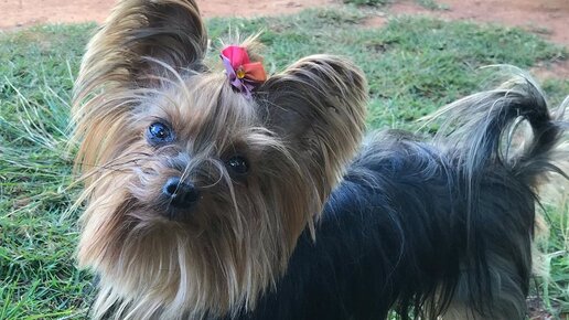 Йоркширский терьер мелкой породы, но очень красивый. Очень популярен. Не знает страха.Хорошо охраняет квартиру, и не признаёт, что он маленький. Хозяина любит самозабвенно, желает быть с ним везде и всегда, даже когда спит. Пёс проворный, и с удовольствием играет с детьми, но за ним нужно внимание, и забота. Эта собачка, йорк, злится, когда ей что то не по нраву...