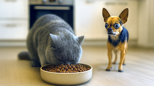 Сценарий знакомый: кошка и собака живут бок о бок, у каждого — своя миска, свои привычки и свои маленькие хитрости. Стоит хозяину отвлечься — и кошка уже «на экскурсии» в собачьей миске. Похрустела чужими гранулами, умывается, делает вид, что так и должно быть. С первого взгляда — ничего драматичного: покушала и ушла. Но питательные формулы у кошек и собак разные, и последствия «безобидного» перекуса нередко проявляются не сразу, а накапливаются неделями и месяцами. Кошки любопытны по определению...