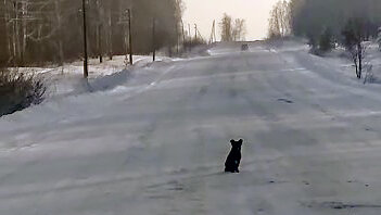 Собака живет в лесу у дороги и ждет хозяина который ее туда выбросил.