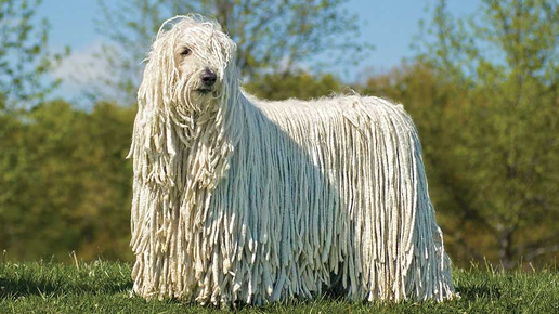 Шерсть комондора, похожая на швабру, разработанная для защиты от хищников и экстремальных погодных условий, внешне похожа на шерсть венгерской овцы Ракка...
