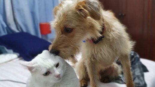 Собака все время приносит лакомства коту, чтобы порадовать его