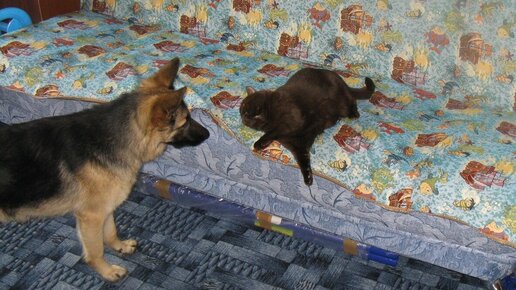 Как собака пристает к кошке