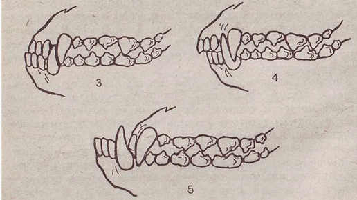 Ветеринары и кинологи называют несколько видов взаимного расположения верхних и нижних резцов: ножницеобразный прикус; прямой прикус; перекус или прогения; недокус. Существуют еще несколько незначительных аномалий. Кинологи так называют положение, когда верхние резцы на 1-2 мм перекрывают нижние. Важно следить за тем, чтобы при таком прикусе зубы не соприкасались. В противном случае, это будет неправильный прикус. Такой вид прикуса является нормальным положением челюстей для некоторых пород...