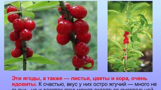 Содержание В нашей природе существуют растения, которые на первый взгляд кажутся красивыми и привлекательными, но которые могут являться опасными для нашего здоровья. Одним из таких растений является «волчья ягода». Избавиться от опасности, связанной с ее употреблением, необходимо знать противопоказания и правила применения. Кустарники «волчьей ягоды» широко распространены по всей территории нашей страны. Именно ягоды этого растения являются опасностью для нашего организма. Причина этой опасности – отравляющее вещество, содержащееся в ягодах...