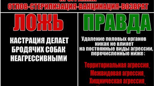 Влияние стерилизации (кастрации) на поведение собак (в том числе и бездомных) агрессивность стерилизованных (после овариогистерэктомии) сук растет во всех случаях агрессивного поведения, кроме так называемой агрессии хищника (охотничьей агрессии). Научный анализ влияния стерилизации (кастрации) на поведение домашних и бездомных собак Принято считать — и это мнение почему-то распространено даже в ветеринарных кругах — что стерилизация суки приводит к снижению уровня агрессивности животного. Но есть основания полагать, что на самом деле все обстоит с точностью до наоборот...