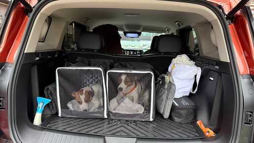 Перевозка собак в машине: багажник или задний диван? И почему мои Джеки теперь путешествуют только в багажнике 🐶🚗 «Почему они у тебя в багажнике? А не на заднем сиденье?» Рассказываю честно. Недавно мы начали ездить с собаками в переносках, первый час дороги звучал: дружный вой, возмущение и концерт на всю дорогу. Но мы не сдались — и это было лучшее решение. 📌 Почему багажник — это выбор комфорта и безопасности: — 1. Прежде всего безопасность. В багажнике собака фиксирована в переноске. Она не вылетит вперёд при резком торможении, не будет прыгать по салону и отвлекать водителя...