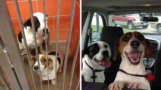 Собаки до и после того, как их забрали из приюта. (10 фото)