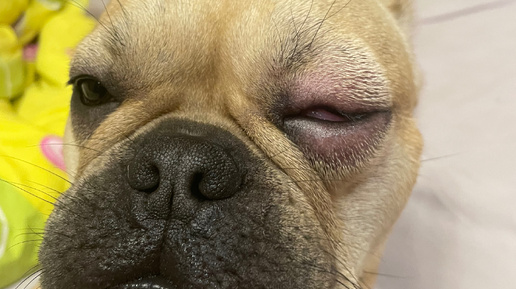 У Французского бульдога опух глазик