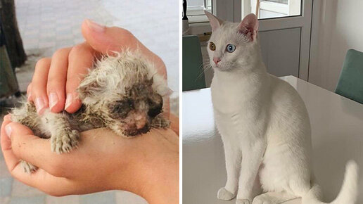 Нет большего счастья для любой собаки или кошки, чем собственный теплый дом и любящий хозяин. К сожалению, многие животные остаются на улицах, так и не узнав, что такое забота и ласка. Однако есть и те, кому повезло встретить на своем пути хороших людей. Мы собрали для вас 10 примеров, способных вернуть веру в человечество и доказать, что добро существует. 1. Это одна и та же кошка спустя год. Оказалось, что под грязной коркой скрывались невероятно красивые глаза. 2. Песика Симонса нашли в луже гудрона...