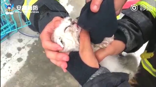 Трогательное видео спасения пожарными котят и щенят умилило китайцев
