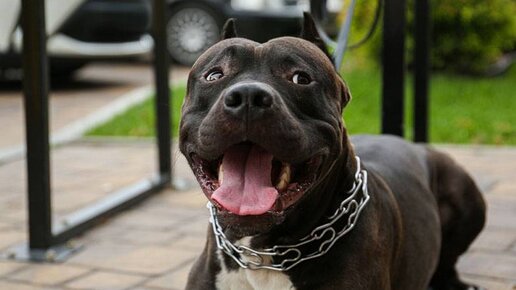 Агрессивный американский стаффордширский терьер на передержке.
