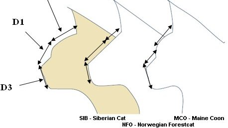 Оценочная шкала Тело От крупного до очень крупного, мускулистое, длинное и широкое, создает впечатление прямоугольности. Шея средней длины с крепкой мускулатурой; широкая грудная клетка. Лапы сильные, средней длины; подушечки лап с пучками шерсти между пальцев. Хвост по крайней мере должен по длине достигать плеча, широкий в основании и сужающийся к кончику, с длинной струящейся шерстью. Голова Большой массивный череп, сквадраченный внешне и с прямыми контурами; скулы высокие, нос средней длины; „коробка“ массивная и квадратная, с заметным переходом ко лбу...