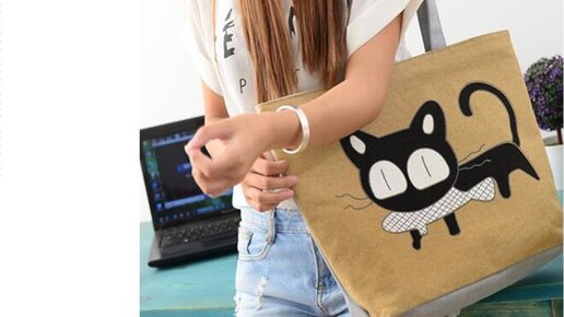 Новая сумка через плечо с мультяшным принтом кошки, женские сумки, вместительная Холщовая Сумка, женские сумки для покупок для женщин с Алиэкспресс - цена 12,22$, заказать: https://is.gd/tn59zN Корейские сумки с кошками характеристики