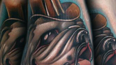 Татуировка в виде собаки породы бульдог выглядит довольно ярко и необычно. Пес на тату может быть стилизован как персонаж мультфильма или быть абсолютно реалистичным. Это может быть английский, американский или французский бульдог. В любом случае собака смотрится как надежный и верный союзник своего хозяина. Учитывая такое разнообразие типов рисунка, значение татуировки бульдог может быть разным. Тату в виде английского бульдога делают люди желающие показать свою причастность к английскому наследию...