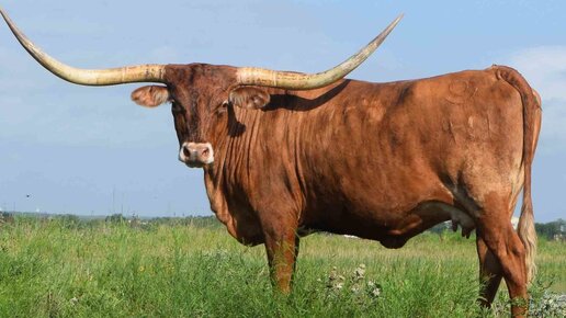 Это порода выведена путем скрещивания коров и быков Индии и Иберии, а также скота, обитавшего в дикой природе в Техасе. Техасский лонгхорн - типичный американец. Быки обладают крутым нравом, что в сочетании с великолепными, напоминающими руль Харлей Дэвидсон рогами, выглядит крайне устрашающе. Очень часто этих животных используют для скачек во время корриды. Характеристики животных Главная отличительная черта коров и быков этой породы – внушительных размеров рога, достигающие в разлете 3 метров. Окрас животных может варьироваться от всех оттенков коричневого до темно-красных с белыми пятнами...
