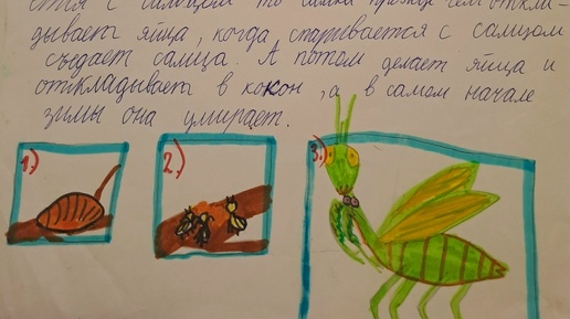 Богомолы - рисунки с текстами о животных (Ориби Каммпирр)