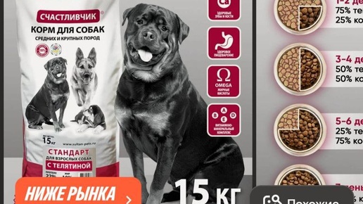 💻Корм сухой 15 кг Телятина для взрослых собак средних и крупных пород, Счастливчик Стандарт полнорационное питание - 2143р (я.пэй