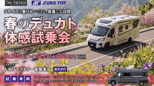 Японская компания Toy Factory, специализирующаяся на производстве автодомов, объявила о проведении весеннего тестового мероприятия под названием «Весенняя тестовая поездка на Fiat Ducato». Событие состоится в течение трёх дней — с 20 по 22 марта 2026 года — на территории головного офиса компании в Гифу. Читать на сайте: Toy Factory впервые даст протестировать три автодома на базе Fiat Ducato Стоит отметить, что Toy Factory занимает первое место в Японии по выпуску автодомов на базе Toyota HiAce, а по продажам кемперов на базе Fiat Ducato компании нет равных во всей Азии...