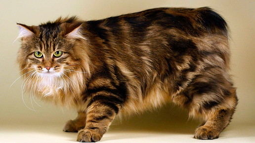 Особенности: Курильский бобтейл известен своим коротким хвостом, который напоминает «боб» и придаёт ему уникальный вид. Эти кошки среднего размера имеют мускулистое телосложение и мощные лапы...