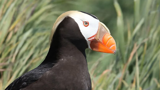 Топорик или топорок из рода тупиков – птица с однообразным окрасом (все взрослые особи имеют чёрно-бурый цвет). Достигает 40 см в длину при этом имея размах крыльев равный 17 см. Птенцы имеют серо-бурую спинку и белый животик. При таком размере птица достигает в весе всего лишь 800 г. Продолжительность жизни достигает 20 лет. Голова этой птицы заслуживает отдельного внимания. Щёки белого окраса, вокруг глаз кайма оранжевого цвета, а за ними расположились жёлтые длинные перья. Клюв приплюснутый с боков имеет яркий оранжевый окрас...