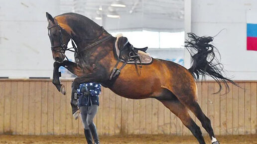 тренинг молодой лошади... напрыгивание🐎