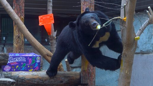 В Московском зоопарке поселились три гималайских медведя, спасенные от контрабандистов. Как рассказали в пресс-службе зоопарка, выловили их контрабандисты и держали в небольших клетках примерно 3 на 4 метра. За все время плена медведи ни разу не ложились в спячку. Когда они приехали в зоопарк, то были крайне истощены, например, Бабуля, самая старшая, весила 70 кг в возрасте 14 лет — это значит, что медвежонком, в период активного роста, ее очень плохо кормили. Те же проблемы у семилетних Васи и Фани...