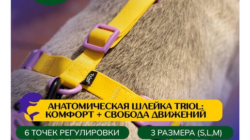 АНАТОМИЧЕСКАЯ ШЛЕЙКА TRIOL: КОМФОРТ + СВОБОДА ДВИЖЕНИЙ  Triol снова в теме инноваций — бренд выпустил эргономичную шлейку из биотана, которая одинаково хорошо работает и для прогулки по парку и для собачьего кроссфита.  Рассказываем о новинке в цифрах:  🔥 6 точек регулировки — чтобы идеально подогнать по спине, груди и животу любой собаки: от вытянутой таксы до коренастого бульдога. 🔥 3 размера (S, M, L) — можно выбрать под любого питомца. 🔥 2 ярких цвета — лимонный пирог и лазурный апельсин...