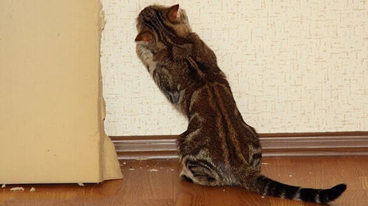 Как отучить кошку драть обои.