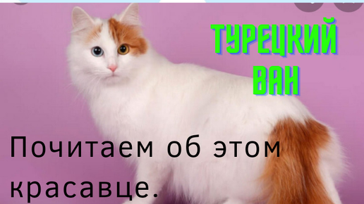 Согласно легенде, кошки именно этой породы спасли Ноев ковчег от мышей и крыс. И первыми сошли с ковчега на землю на горе Арарат. Ученые согласны, порода - одна из древнейших, ей около семи тысяч лет. Родиной кошек является территория вокруг озера Ван (отсюда и название), которое находится на Армянском нагорье в Ванском иле современной Турции. Но армяне тоже считают эту породу своей. Внешний вид Отличительная и самая выразительная черта этих кошек - большие глаза небесно-голубого или янтарного цвета, или разноцветные...
