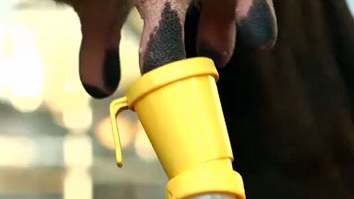 Ежедневный уход за выменем коровы. Смазываем соски.