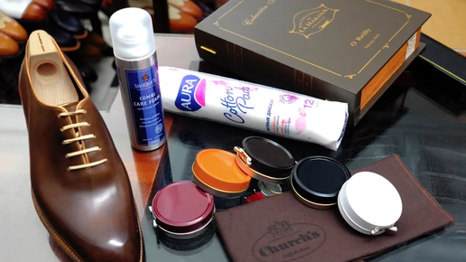 Простой уход не отнимает много времени, не требует специальных знаний, но позволяет сохранить эстетику и эксплуатационные качества обуви на длительный срок. Хорошо ухоженная обувь смотрится лучше, чем новая. Всегда. Чтобы сделать эту процедуру легкой и приятной потребуются: 1. сапожная щетка из натурального конского ворса; 2. чистящая пена; 3. высококачественный гуталин; 4. ватные диски (спонжи); 5. бархотка. Стакан хорошего виски, сигара и неторопливость, не помешают. 1. Перед началом ухода в ботинки вставляют колодки из ароматного розового кедра...