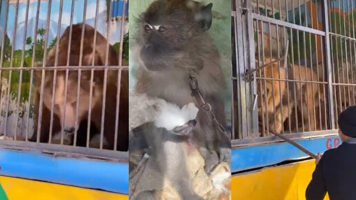 Сегодня в соцсетях появились жестокие кадры из передвижного зоопарка в Навои, где животных держат в ужасных условиях. Видео с зоопарка распространил блогер Никита Макаренко, отметив, что кадры прислали его подписчики. Видео здесь Видео было снято посетителем зоопарка 14 марта. На кадрах видно, в каких ужасных условиях содержатся животные. Медведь, обезьяна и лев сидят в грязных маленьких клетках, судя по поведению, они уже тихо сходят с ума...