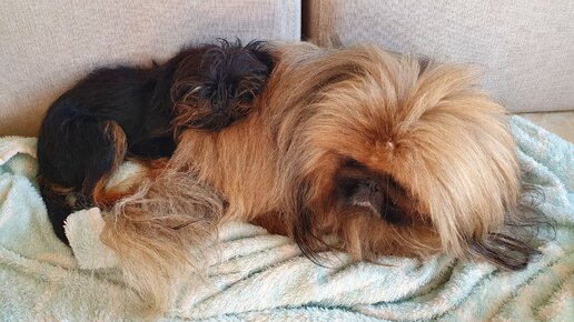 Жили мы, значит, с собаками - не тужили без родителей. Я даже радоваться начала, что у меня никто не болеет, все здоровы и счастливы. И тьфу-ты ж, как сглазила: пекинесу ночью стало плохо. 😭 Он начал лизать пол, ловя невидимых мушек. Думала, причина в моей хрюшести - вымыла пол. Не помогло. Тишка начал вылизывать его еще интенсивнее. Пришлось дергать на отдыхе маму, спрашивать, знает ли она, что с ним. Оказалось, “тараканов” ловить он начинает при тошноте. Дала Альмагеля. Ночью упал на бок и не двигался, скукожившись от боли… У Тишки простатит и мочекаменная болезнь...