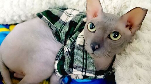 Месяца четыре назад, темным январским вечером, в холодном подъезде одной из кпдшек Якутска нашли совершенно лысого, дрожащего кота породы сфинкс. Он был без всякой одежды. Более того, весь измазюкан в экскрементах. Предположительно, хозяин кота, кем бы он ни был, взбесился на сфинкса из-за того, что он сходил мимо лотка, и выкинул его голым в подъезд на холод. Брошенку взяла к себе зоозащитница Злата Сычева. Всю ночь она просидела с ним перед обогревателем — возвращала к жизни обмороженные лапы, уши и хвост...