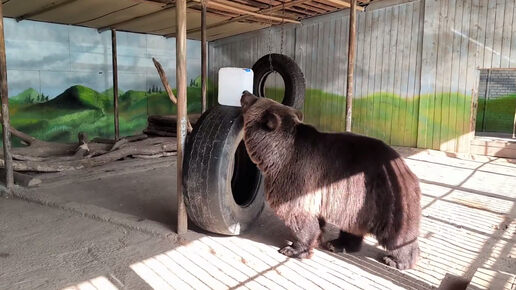 Самарский зоопарк показал, как медведь Умка встречает осень и играет с канистрой