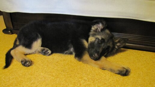 Дарси родилась и до трёх месяцев жила в вольере. Считается, что это хорошо для овчарки. Казалось бы, частный дом, свой двор – гуляй не хочу! Но то ли из вольера щенков выпускали нечасто, то ли на кормёжке экономили, только в первый же день мы заметили одну странность: Дарси всё время норовила прилечь. Через пару дней убедились окончательно: у щенка слабые задние лапы. Подходит малышка на зов и тут же плюхается на пол. Бежит за мячиком, догонит – и снова на бочок. На прогулке тоже предпочитала лежать...