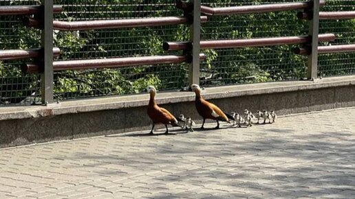 Генеральный директор Московского зоопарка Светлана Акулова в четверг, 30 мая, поделилась фото с самостоятельно прибывшими в зоосад утками. На кадрах заметны две взрослые особи и порядка десяти птенцов. — Сами пришли в зоопарк. Пустят ли их наши постояльцы... Но! Орнитологи говорят, что каждая семья знает, куда ей надо идти, а куда нет, — пояснила Акулова в публикации. По словам гендиректора зоосада, сейчас семейство уток гостит в вольере у пеликанов. Несколькими днями ранее специалисты ГКУ МО «Мособлпожспас» спасли утят, которые провалились сквозь решетку дорожной канализации...