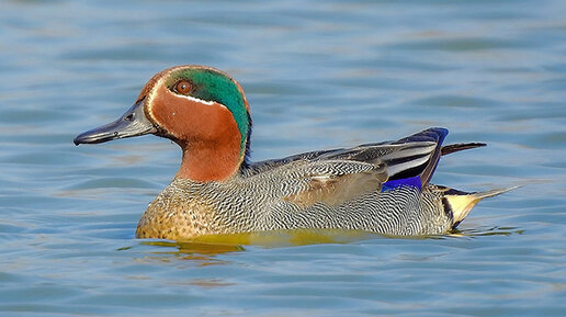 В брачный период самцов легко узнать по их роскошному оперению. У чирка-свистунка красно-бурая голова с зеленой полосой, проходящей через глаза.