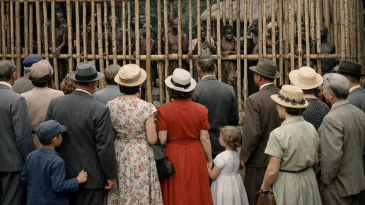 Обычное воскресное утро в Европе 50-х годов прошлого века. Нарядная толпа, улыбки, дети с родителями. Типичная картина семейного досуга. Только вот то, на что они все пришли посмотреть, переворачивает все представления о так называемой европейской цивилизованности с ног на голову. Карта Европы необычного содержания гуляет по соцсетям уже несколько дней. Страны раскрашены двумя цветами — зеленым и красным. Критерий окраски простой и жуткий: были ли на территории этого государства человеческие зоопарки...