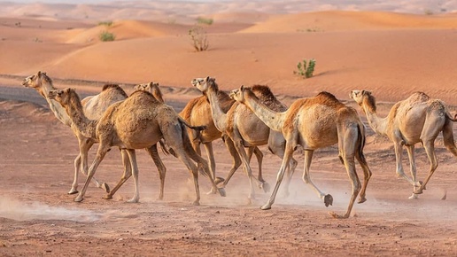 Верблюд — это крупное млекопитающее подотряда мозоленогих с длинными ногами и характерной горбатой спиной. Два основных вида верблюдов — это двугорбый, арабский верблюд или бактриан и верблюд, у которого один горб, то есть одногорбый верблюд или дромадер. Верблюды хорошо приспособлены к засушливым условиям, так как у них густая шерсть, которая защищает их от сильного холода ночью, и светлого окраса, который помогает отражать тепло в течение дня. У них также широкие ступни, которые позволяют им ходить по песку, не проваливаясь...