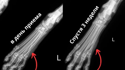 На приёме у Семернёва Егора Владимировича была 13-летняя кошка Буся. ✅Жалобы хозяина: хромота. Выполнена рентгенография, по результатам которой был обнаружен перелом 3 и 4 костей плюсны. Доктор установил, что перелом стабилен, так как кошка может опираться на 2 оставшиеся кости. Поэтому для ускорения заживления перелома было рекомендовано лишь ограничить питомцу подвижность (клеточное содержание) на определенный срок. Спустя почти 3 недели, проведя контрольную рентгенографию, доктор отметил,...